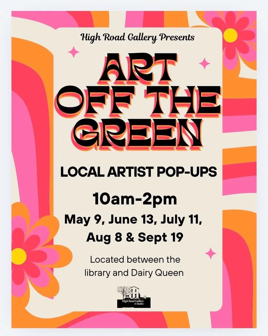 Art Off the Green is High Road Gallery’s summer series of outdoor art gatherings held beside our historic 1818 house in the heart of Worthington. These lively events invite the community to step into the creative process—painting together, meeting local artists, listening to music, and experiencing art in a welcoming outdoor setting. From collaborative murals to pop-up artist booths and family-friendly activities, Art Off the Green celebrates the simple joy of making something together.
