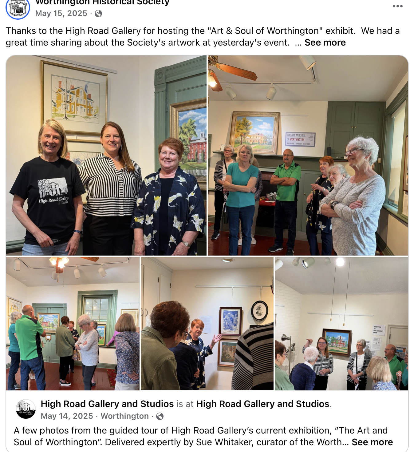 We offer exhibits and programs that blend art, history, and community storytelling. For example, we recently conducted a month-long joint exhibit of art with the Worthington Historical Society