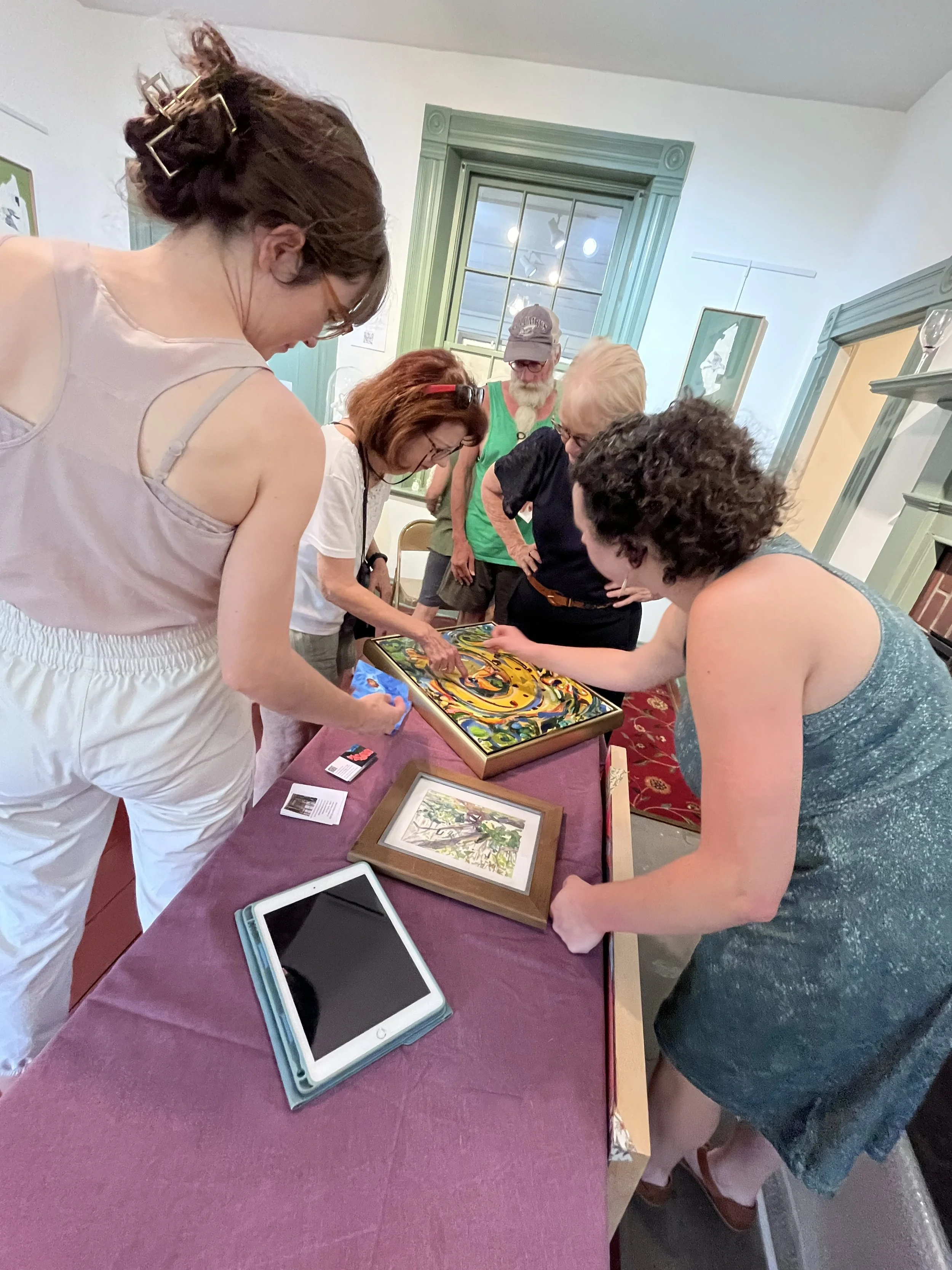Twelve resident artists working and performing free demonstrations for the public in watercolor, pastel, printmaking, textiles, mixed media, sculpture, and more
